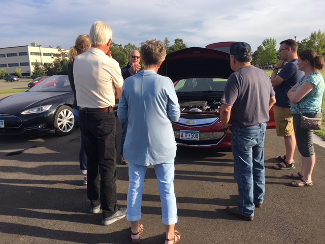 What this event showed me most clearly was the sense of community that has grown among Minnesota EV owners. I spoke with two Tesla owners who say they are involved in groups that meet monthly to chat about new advances in the technology and what they've learned on the road. They are also involved in online forms through which they say they gain inside information about new Tesla developments before they're even released to the public.